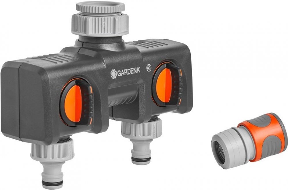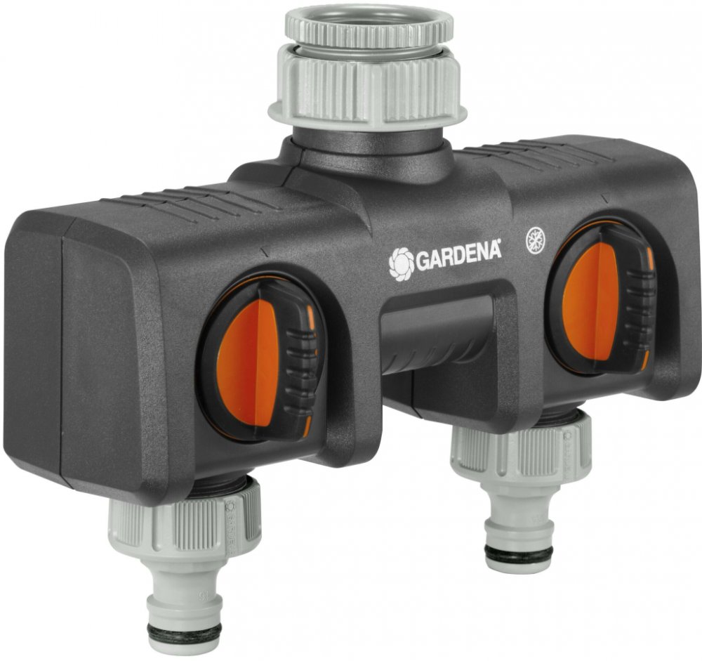 2-cestný rozdělovač od společnosti GARDENA slouží k současnému připojení dvou zařízení k jednomu kohoutu. Výstupy lze plně regulovat. K rozdělovači lze připojit dva zavlažovací počítače od společnosti GARDENA. Kohoutovou přípojkou se závitem, která je součástí systému Profi Maxi-Flow, (č. výr. 2801-20) je možné dvoucestným rozdělovačem adaptovat na systém GARDENA Profi Maxi-Flow. 2-cestný rozdělovač od společnosti GARDENA je vhodný pro kohouty se závitem 33,3 mm (G 1 ).