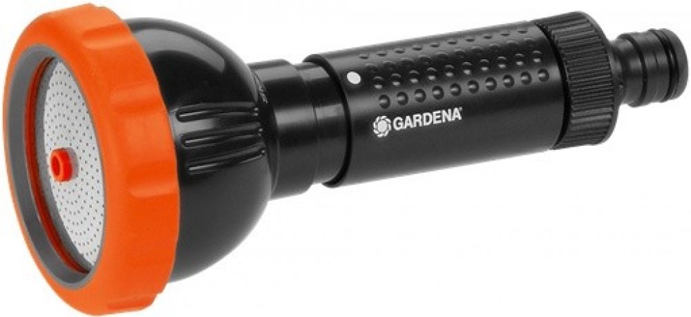 Profi postřikovací sprcha GARDENA je ideální ve spojení s delšími hadicemi nebo pro použití s čerpadly. Zvláště vhodná je pro individuální zalévání a čištění. Tímto zařízením může protékat velké množství vody. Poskytuje tři různé tvary stříkání: měkké kropení, mžení a intenzivní proud, který je vhodný pro čištění. Tok vody je také možné vypnout. Dlouhou životnost zaručuje stříkací hlava s ochranným prstencem z měkké pryže.