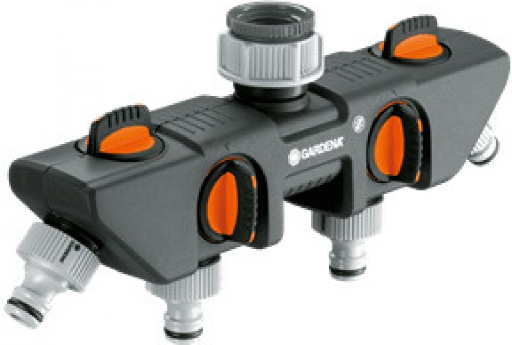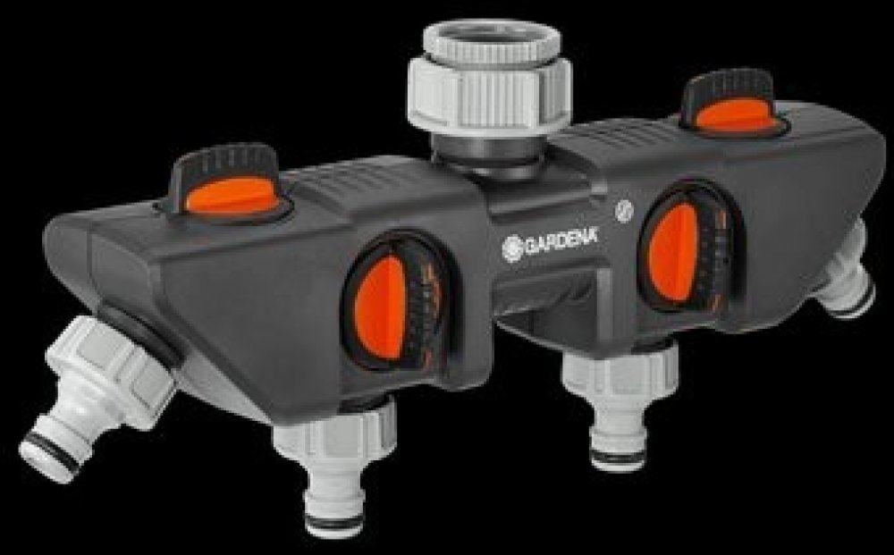 K čtyřcestnému rozdělovači lze připojit dva zavlažovací počítače nebo časovače od společnosti GARDENA.