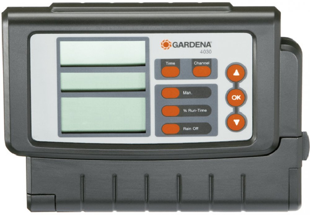 * GARDENA řízení zavlažování 4030 Classic se používá pro automatické ovládání větších zavlažovacích systémů, většinou výsuvných zavlažovacích systémů, jako je např. GARDENA Sprinklersystem. * Řízení zavlažování 4030 Classic se používá zejména tehdy, když množství vody není pro současný provoz celého systému - skládajícího se z několika zavlažovacích vetiev - dostatečné. * I přesto, že mají jednotlivé plochy výsadby různé nároky na vodu, reguluje jednotlivé intervaly zálivky na jedné větvi a zajišťuje tak individuální a optimální zálivku. * V případě okamžitého zahájení zavlažování jej lze aktivovat ručně. * GARDENA řízení zavlažování 4030 Classic lze použít jak v interiéru, například v garáži, tak na venkovních místech chráněných před deštěm. ➤ Automatické a časově nenáročné zavlažování * Se systémem pro řízení zavlažování 4030 řady GARDENA Classic bude vaše zahrada spolehlivě a pohodlně zavlažována - i když nejste doma. Získáte více volného času, bujnou zelenou zahradu a nádherné zdravé rostliny. ➤ Snadné programování * Velký a jasný displej usnadňuje programování. Uživatel je jednoduše a srozumitelně prováděn jednotlivými kroky. ➤ Rozmanité možnosti zavlažování * Pro každý ventil lze vybrat tři nezávislé zavlažovací programy. Dny a cykly zavlažování jsou volitelné samostatně. Délku zavlažování lze flexibilně nastavit mezi jednou minutou a 3 hodinami 59 minutami. ➤ Provoz s úsporou vody * Připojením dešťového senzoru nebo čidla půdní vlhkosti od společnosti GARDENA je automatické zavlažování přerušováno v závislosti na vlhkosti půdy a přírodním dešti.