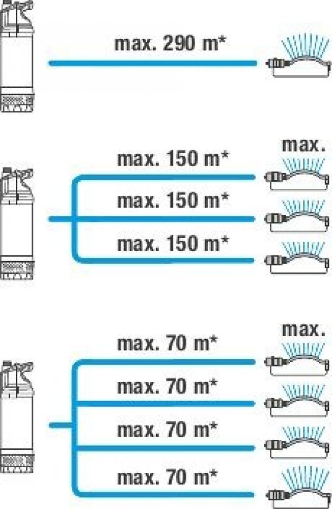 Ponorné tlakové čerpadlo je velmi výkonné. Ve spojení s ním můžete bez problémů současně používat postřikovače nebo až 4 zavlažovače.