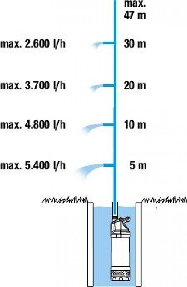 Toto čerpadlo je dodáváno s 20 m dlouhým napájecím kabelem a pevným 23 m dlouhým upevňovacím lanem. Takže ani hlubší studny do 17 metrů nejsou problémem.