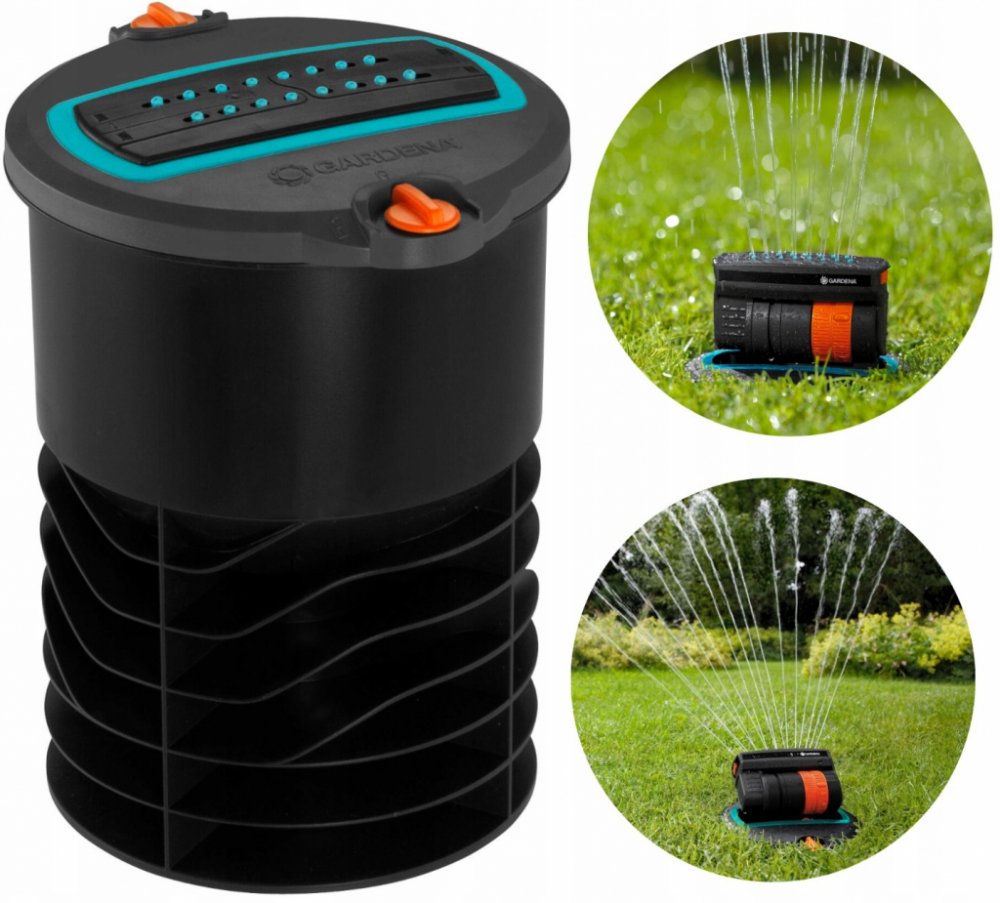 GARDENA čtyřplošný zadešťovač OS 140 - trvale instalovaný pod zemí - je ideální pro zavlažování čtvercových a obdélníkových travnatých ploch o rozloze 2-140 m².