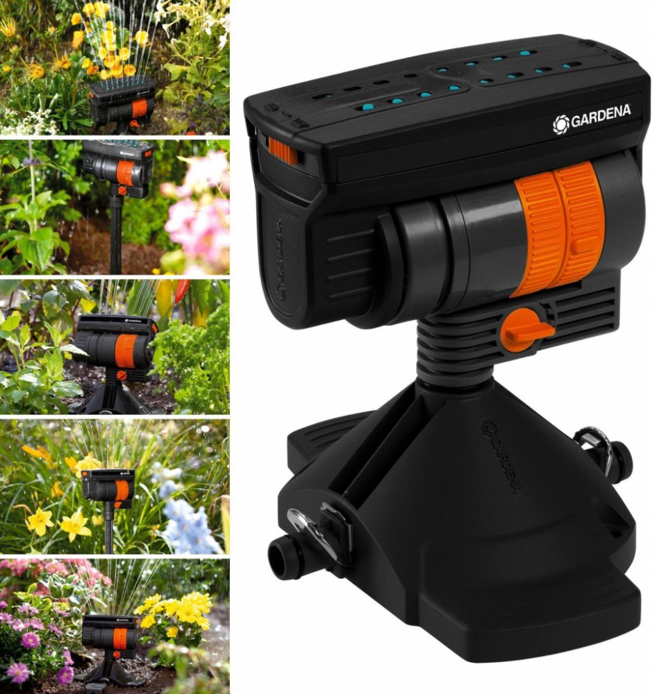 Čtyřplošný zavlažovač OS 90 - 8364-20 Pro plochy - snadná instalace. Ideální pro pečlivě dávkované zavlažování okrasných zahrad, stejně jako zeleninových a a květinových záhonků. Nastavitelná šířka postřiku je od 0,5 do 7 m, dosah je proměnlivý od 1,5 do 13 m a průtok vody je plynule nastavitelný. 16 flexibilních přesných trysek zajišťuje především rovnoměrnou distribuci vody. Integrovaný filtr na nečistoty zaručuje trvalý bezporuchový provoz. V kombinaci s až dvěma prodlužovacími trubkami (č.v. 8363-20) se čtyřplošný zavlažovač zvýší a může tak zavlažovat vyšší rostliny seshora. Zavlažovač může být upevněn na pevném povrchu např. pomocí šroubů. Je možné jej také připevnit k půdě pomocí vedení trubky (č.v. 8328). Součástí balení čtyřplošného zavlažovače je také koncová zátka. Patentovaná rychlá spojovací technika Quick & Easy zajišťuje obzvláště snadnou instalaci na 13 mm (1/2 ") připojovací potrubí. Díky ní je také každá změna velmi jednoduchá. Variabilní zavlažování menších okrasných a kultivovaných ploch Šířka zavlažování, dosah a průtok vody lze pohodlně a plynule regulovat. Obdélníkové plochy 1 - 90 m² lze snadno zavlažovat jako součást GARDENA Micro-Drip-System. Rovnoměrná distribuce vody Díky 16 flexibilním měkkým plastovým tryskám. Špičková kvalita výrobku Kvalitní německé výrobky GARDENA znamenají důvěryhodný výkon, spolehlivost a neustálé inovace. Robustní na pevném povrchu GARDENA čtyřplošný zavlažovač OS 90 lze umístit na pevném povrchu, jako je např. kámen pomocí šroubů. Snadná instalace Díky patentované připojovací technologii Quick & Easy lze všechny součásti snadno kombinovat, spojovat a v případě nutnosti opět rozpojovat. Výškově nastavitelné V kombinaci s prodlužovací trubkou lze zavlažovat i vyšší rostliny. Parametry čtyřplošného zavlažovače: sada se systémovými díly: 1 Oscillating Sprinkler, 1 End Cap použití pro zavlažování čtvercových nebo obdélníkových ploch dosah, min. 13 m max. šířka postřiku: 7 m