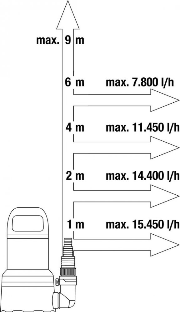 - Čerpadlo na čistou vodu 17000 Aquasensor má výkon 750 W a vyčerpá až 17 000 litrů čisté nebo mírně znečištěné vody za hodinu a s maximální dopravní výškou až 9 m.
