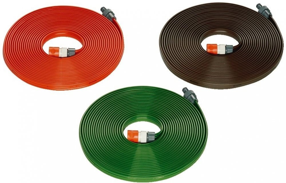 Hadicový zavlažovač se dodává v různých barvách. Můžete si zvolit, zda bude hadicový zavlažovač nenápadně hnědý nebo zelený v záhonu nebo na trávníku, nebo zda má být jasně viditelný prostřednictvím signální oranžové barvy.