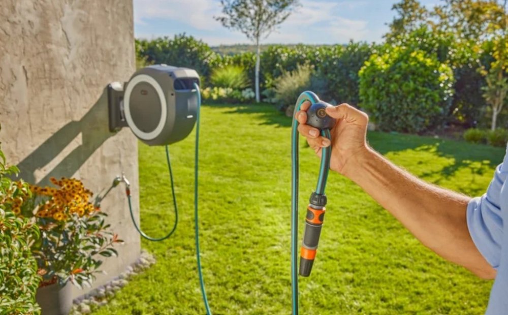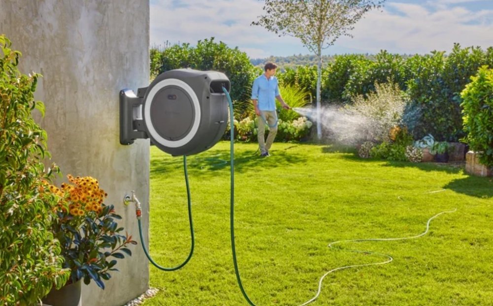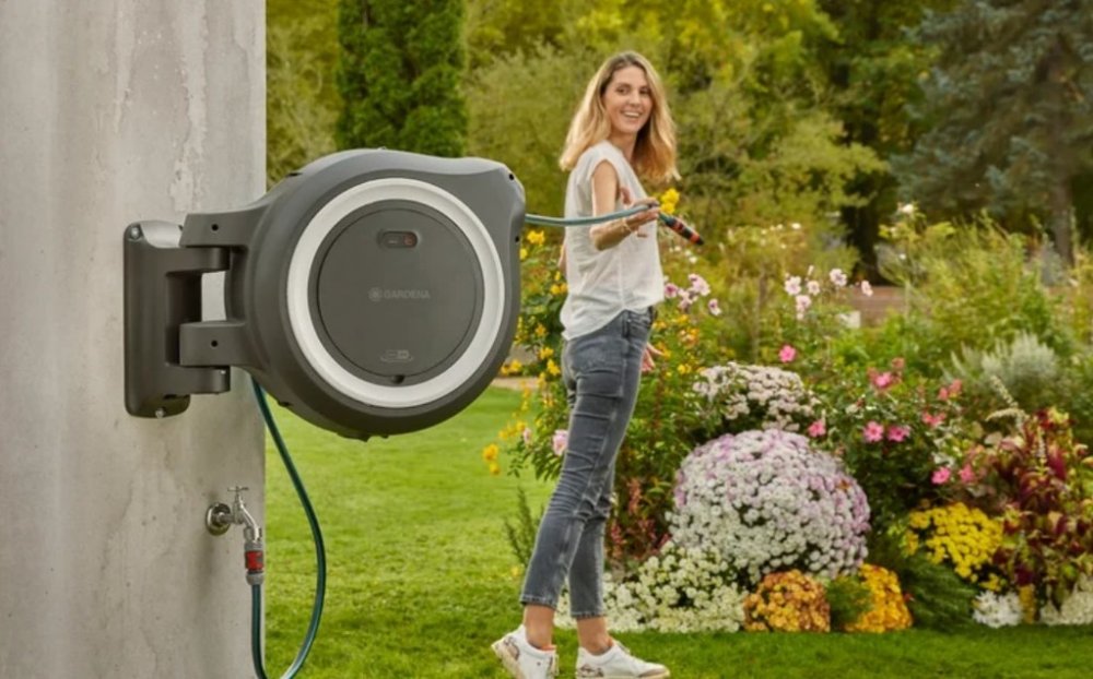 Pro zavlažování velkých zahrad lze 40 metrů dlouhou hadici snadno vytáhnout