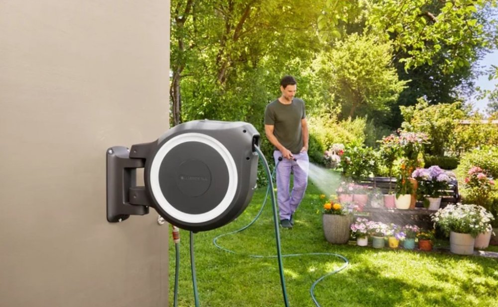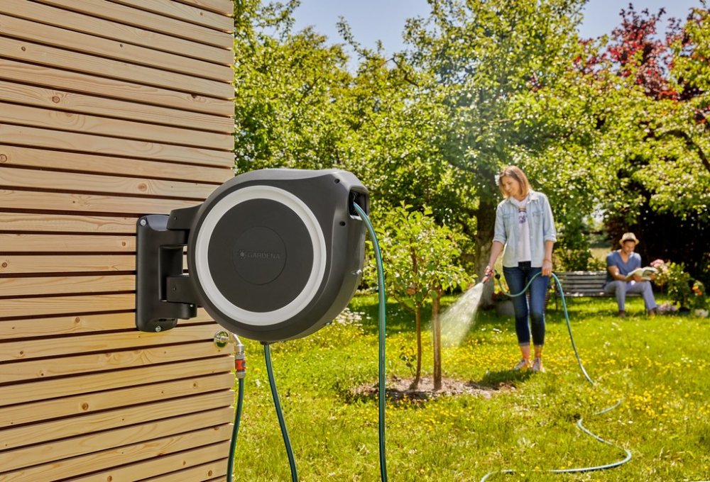 Díky boxu otočnému o 180° a 30 metrů dlouhé zahradní hadici je při zavlažování zajištěna maximální volnost pohybu. V případě použití jednoduše vytáhnete zahradní hadici na požadovanou délku a začnete zalévat. Jakmile zastavíte, extra krátké uzamykací body se aktivují a zahradní hadici zajistí. Po dokončení práce nemusíte hadici navíjet, ohýbat se, ani si špinit ruce.