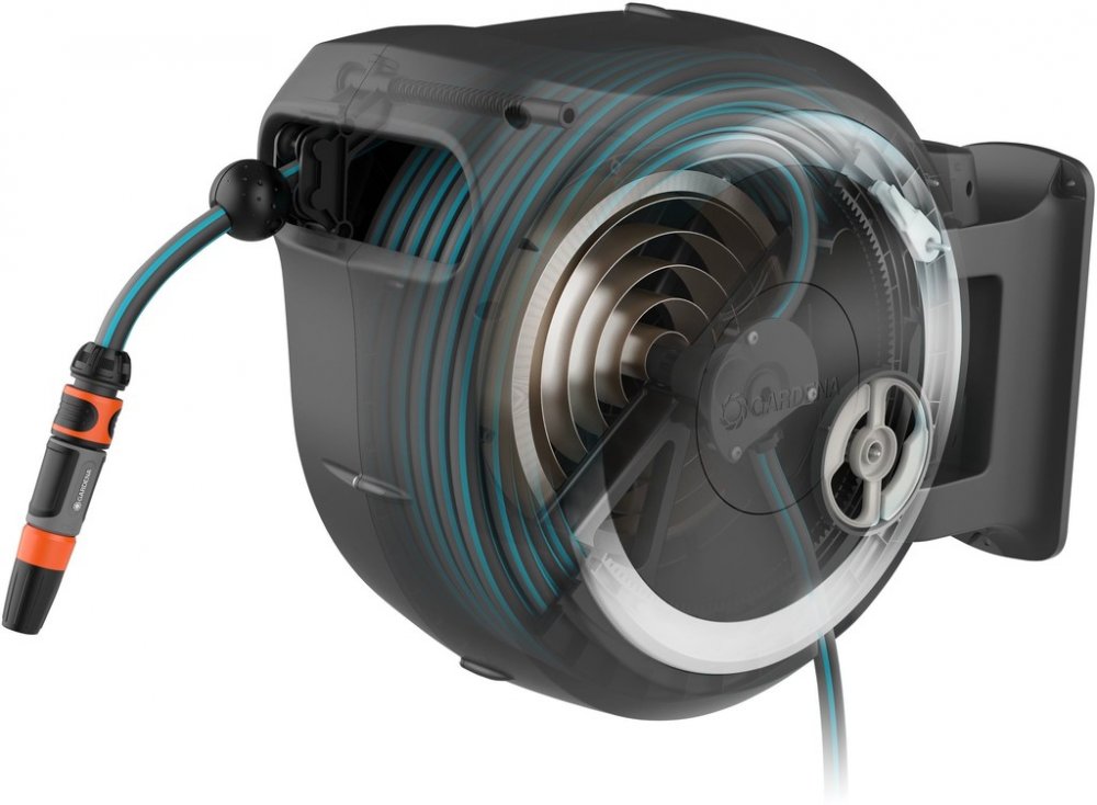 Pouhým lehkým zatažením za konec hadice uvolníte zámek a aktivujete zabudovanou ocelovou pružinu. Ta vám hadici automaticky, spolehlivě a rovnoměrně navine. Inovativní technologie RollControl zajišťuje při navíjení bezpečnost a kontrolu, zatímco integrovaná vodící cívka úhlednost a rovnoměrnost.