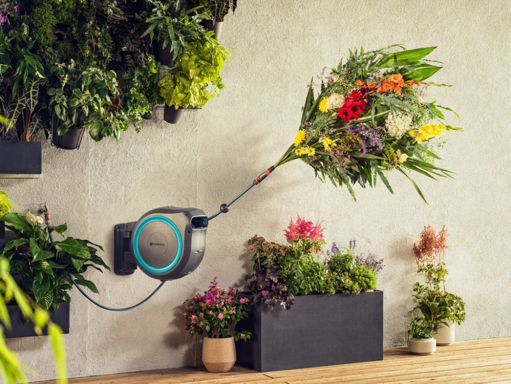 Pohodlné zavlažování velkých zahrad pomocí nástěnného boxu na hadici RollUp XL