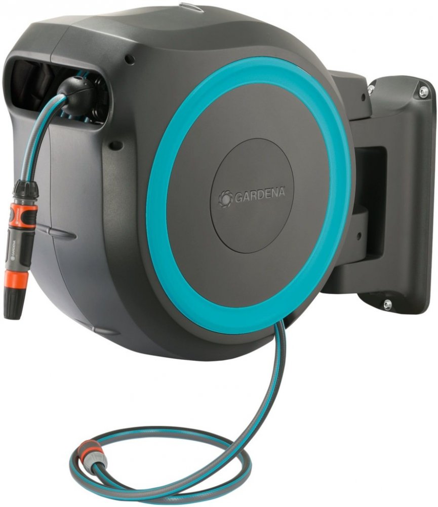 Díky až 35 metrů dlouhé hadici (v závislosti na variantě) a boxu otočnému o 180° se stane zavlažování vašich rostlin potěšením a nikoliv námahou. Box na hadici následuje váš směr pohybu a zabraňuje zalamování nebo uzlování hadice. Poté, co jste hadici vytáhli na požadovanou délku, extra krátké zajišťovací body hadici automaticky uchopí a zafixují ji ihned po vašem zastavení. Lehkým zatažením za konec hadice se uvolní zajišťovací mechanismus a integrovaná ocelová pružina navine vytaženou zahradní hadici plně automaticky, spolehlivě a rovnoměrně za vás.