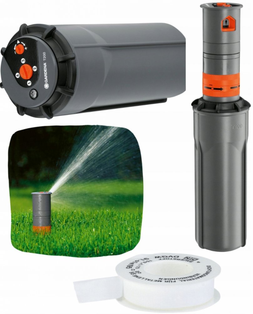 Zadešťovač turbínový Gardena T 200 8203-29 je součástí GARDENA Sprinklersystém , který je vhodný pro zavlažování středně velkých trávníků do rozlohy až 200 m².