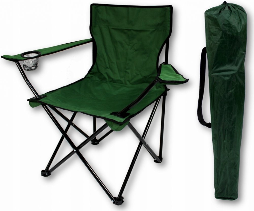 Tmavě zelené turistické nebo rybářské křeslo je nezbytnou součástí outdoorového vybavení. Je obohacen o užitečné doplňky, upevněné na profesionální konstrukci s odolnými materiály (ocel a oxfordská tkanina). Má praktický držák na pohár. Stabilní ocelová konstrukce dělá ze židle kvalitní vícesezónní produkt.
