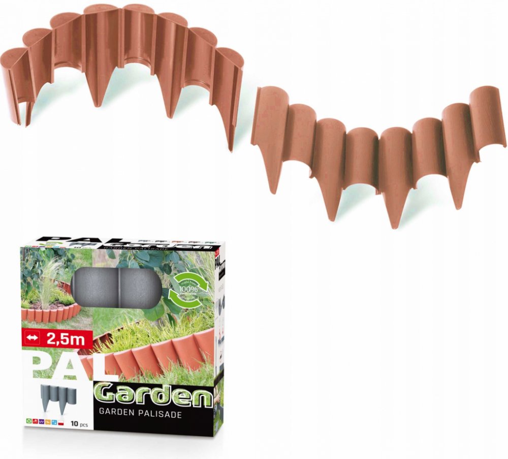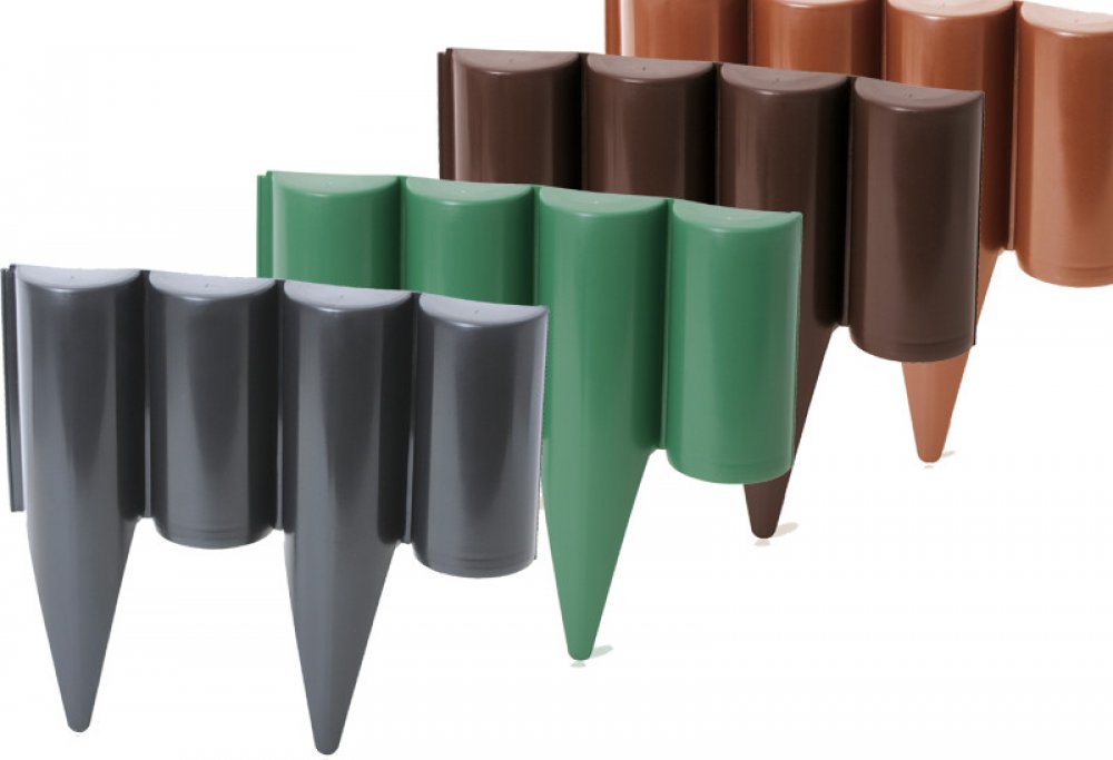 Obrubník plastový zahradní odděluje trávník od rostlin v zahradě, cest, obruba záhonů, chodníků, stromů, keřů. Velmi pružné spoje palisád umožňují výborné elastické vlastnosti při tvarování zahradní obruby. Poskytuje pevnost při vložení do země a umožňuje jednoduchou a rychlou instalaci. Flexibilita dává neomezené možnosti tvarování. Velice snadná aplikace do stávajícího terénu.