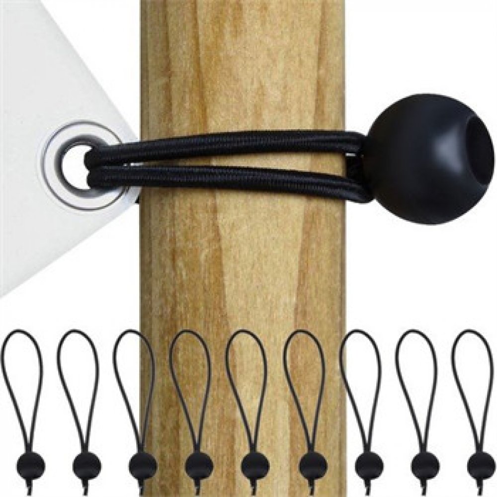 Sada napínacích gumiček, které jsou vhodné pro uchycení stanů, altánků a všelijakých plachet. Stačí spodní konec gumičky provléknout očkem a omotat kolem kuličky.
