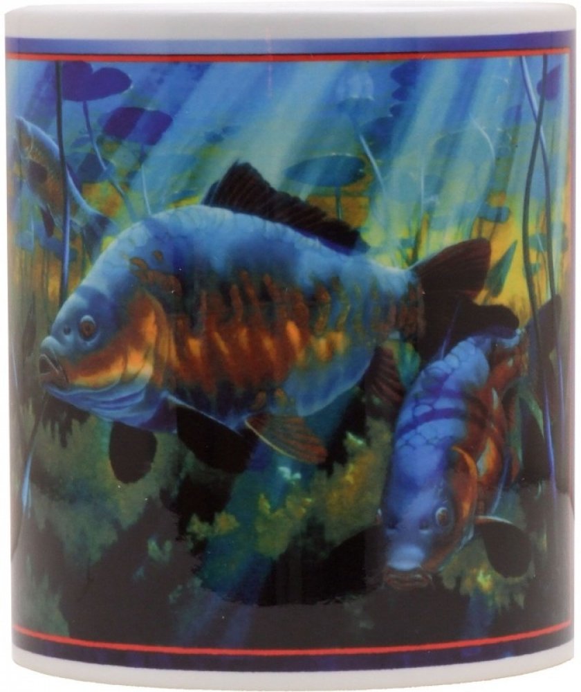 Krásný keramický hrnek s kaprovým motivem, ideální jako dárek pro nadšené rybáře.