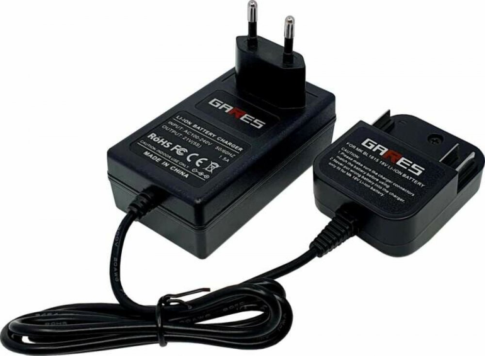 Rychlonabíječka Gares® umožňuje rychlé nabíjení akumulátorů o napětí 18 V. Díky asymptotickému algoritmu nabíjení jsou doby nabíjení baterií krátké. Vhodná pro rychlé nabíjení akumulátorů Li-Ion 18 V bezdrátového elektrického nářadí značky Makita.