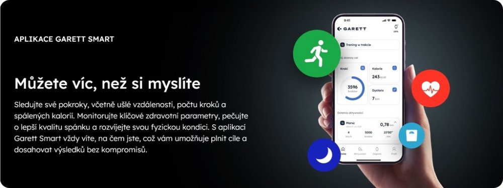 Sleduj ušlou vzdálenost, počet kroků a spálené kalorie. Kontroluj nejdůležitější zdravotní parametry, zlepšuj kvalitu spánku a pečuj o svou kondici. Dosahuj lepších výsledků a plň své cíle bez výmluv. Díky aplikaci Garett Smart máš svou aktivitu vždy pod kontrolou.