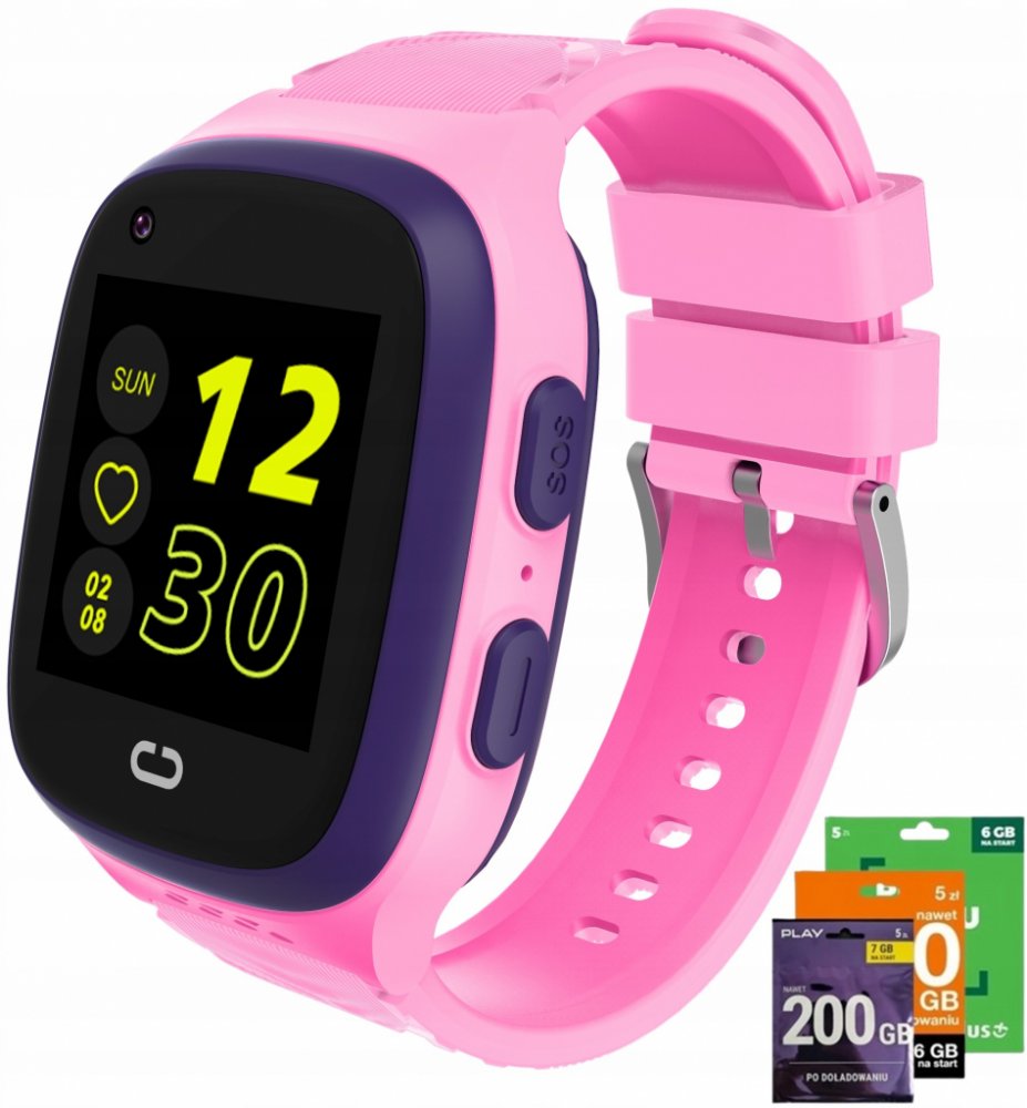 - Další funkce: Hovory, videohovory, budík, krokoměr, měření tepu, tlaku a kyslíku v krvi, měření spánku, školní rozvrh, fotoalbum