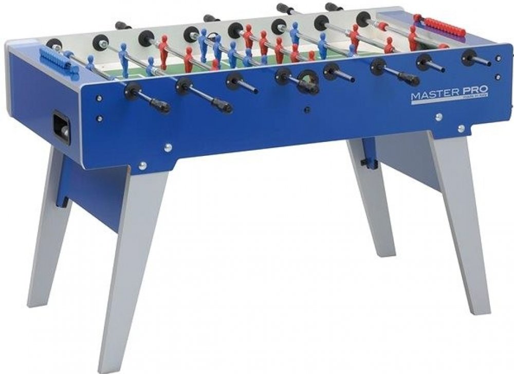 Profesionální stolní fotbal určený do interiéru. NOVINKA 2014 poskytující zábavu v domech a kancelářích s omezeným prostorem. Stabilní a robustní díky inovovaným, velmi pevným sklápěcím nohám. Master PRO může být po hře jednoduše složen, čímž šetří skladovací prostor. Elegantní šikmé nohy z 30 mm dřevovláknité desky pro lepší stabilitu na zemi. Nohy mohou být sklopeny do kabinetu. Gumové nožky umožňují vertikální uložení stolu. Hrací pole z laminovaného plastu na dřevotřískové základně s vyvýšenými rohy. Bílé lajny na zeleném pozadí napodobují skutečnou fotbalovou plochu. Osazení stolního fotbalu Italské firmy RETA - oficiálního dodavatele stolních fotbalů celosvětové ligy ITSF. Plně otáčivý (360°) brankář pro snadnější skórování. Plastová počítadla gólů s červeno/modrými kostkami. Schránka na míček umožňuje snadné vrácení míčku po každém gólu. Stolní fotbal odpovídá evropské normě pro užité materiály EN 71-1, 71-2, 71-3 a 71-9. Jednoduchá údržba: všechny povrchové části z omyvatelných materiálů pro snadné čištění. balení: karton s polystyrenovou výztuží pro bezpečnou přepravu. ZND - Záruka Náhradních Dílů. K tomuto výrobku si u nás můžete objednat jakýkoliv náhradní díl.