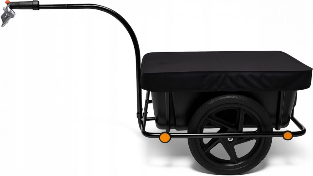 Robustní plastová vana o objemu 95 litrů pojme i větší náklad, a díky předmontovanému závěsu ho rychle a bezpečně připojíte za kolo.