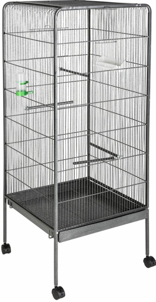 Garlist klece 47 x 47 x 148 cm pro chov pro středně velké ptáky ocel s práškovým nátěrem snadná údržba pouze do interiéru 0.22 m2 12.5 kg výsuvný vyjímatelný zásobník otevřená horní část (síť) mřížová podlaha
