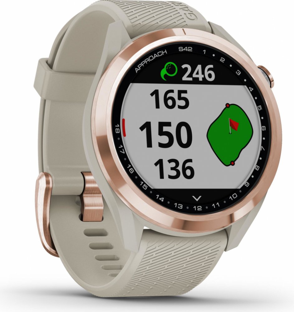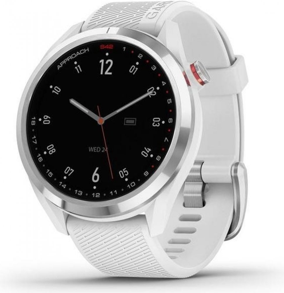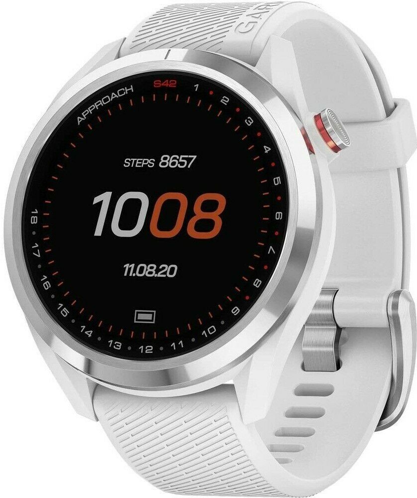 Chytré golfové hodinky Approach S42 jsou navrženy tak, aby vám pomohli zlepšit vaši hru na hřišti a zároveň s vámi mohly zůstat po celý den, jako stylový a funkční doplněk. Hodinky jsou vybaveny displejem skvěle čitelným i na přímém slunci, takže na údaje vždy uvidíte. Můžete je nosit nepřetržitě a dostávat chytrá oznámení, sledovat počet svých kroků a ještě mnohem více. Ať nastoupíte na kterékoli z více než 42.000 přednahraných hřišť, budete ho znát jako své boty.