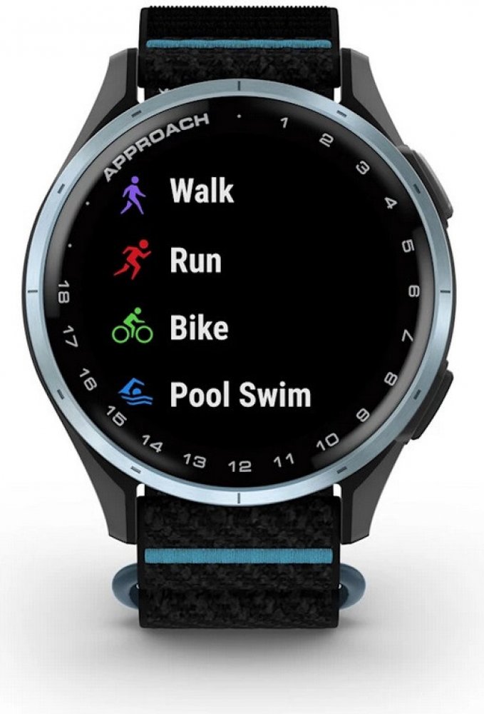 Garmin Garmin Approach unisex 20mm Quick Release 4 GB 1.2 palce AMOLED kulaté 44.0 g 43 mm 12.5 mm přes GPS v hodinkách dotykové hliník Gorilla Glass s hliníkovou lunetou 50 m (5 ATM) pro aktivního sportovce pro dlouhé výpravy 10.0 dní 7-14 dní bez podpory plateb hodinky, nabíjecí kabel, návod