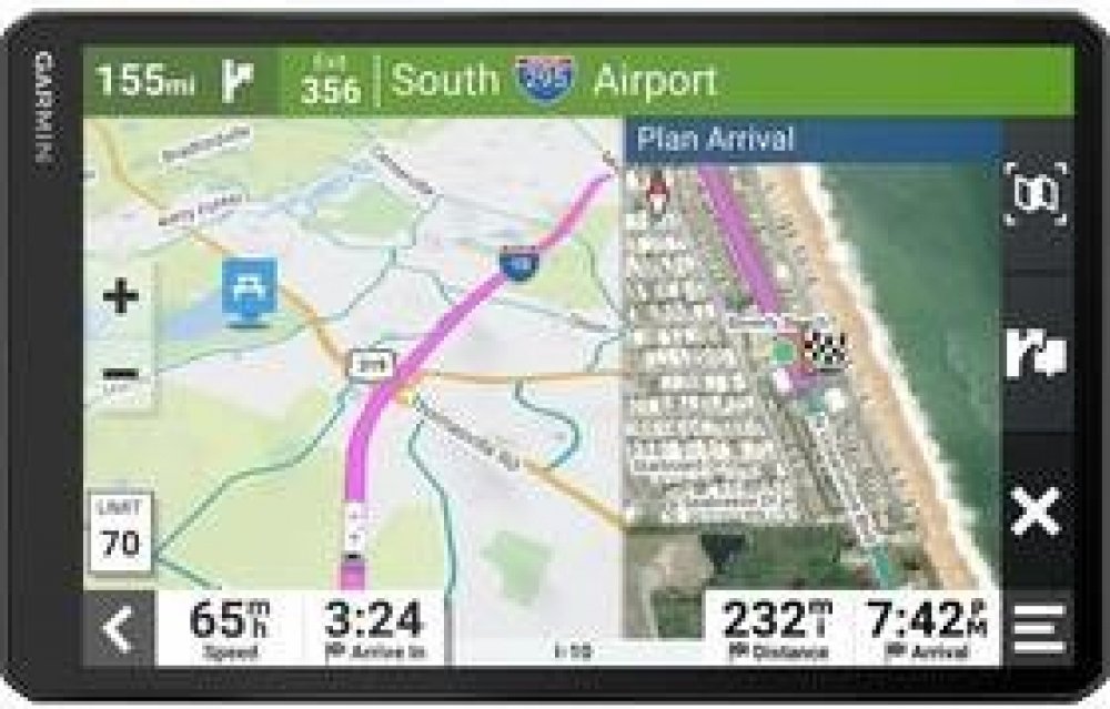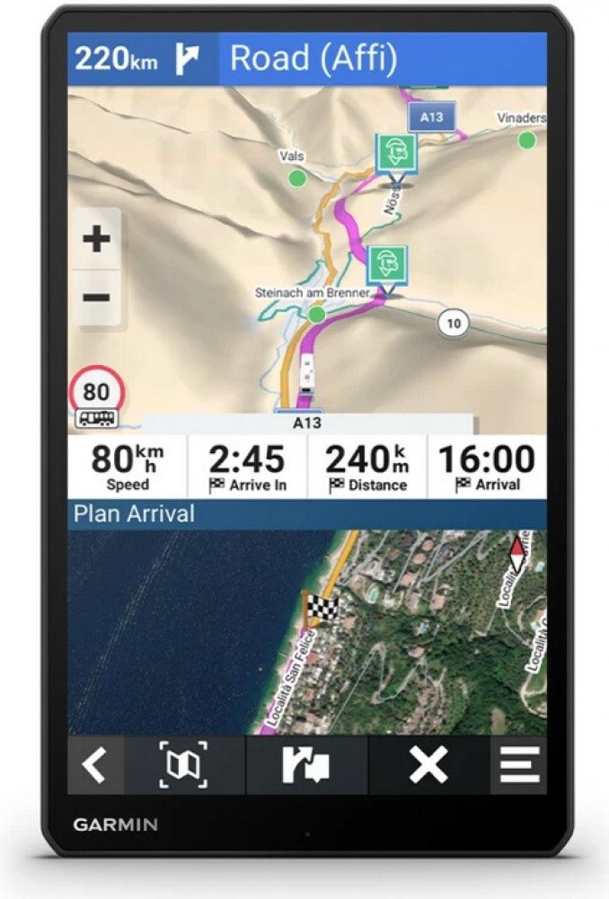 Mějte přehled o nadcházejících prudkých stoupáních, ostrých zatáčkách, hmotnostních limitech a dalších omezeních na trase ještě dříve, než k nim dojedete. Využijte satelitní snímky BirdsEye, které vám pomohou snadno najít vjezd na parkoviště nebo do autokempu.
