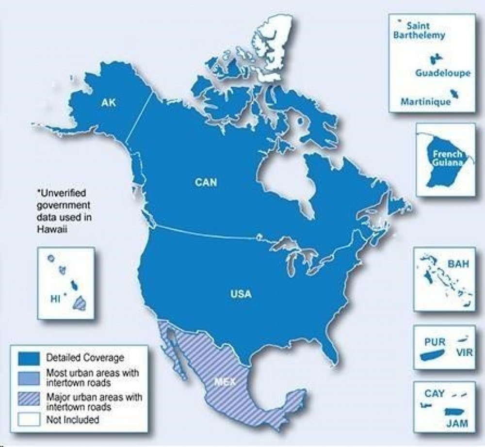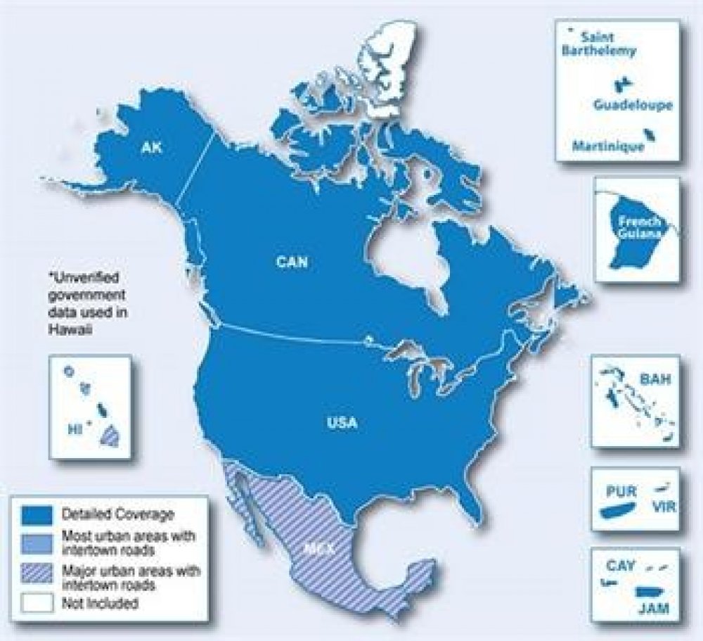 Mapy edice CityNavigator Severní Amerika NT předehrané na datové kartě (microSD/SD). Karta obsahuje navigační mapu USA, Kanady, Mexika a Portorika.