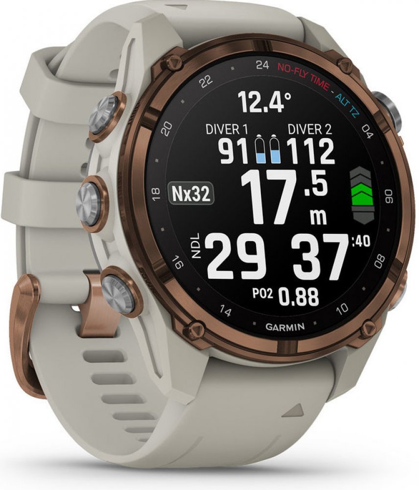 Potápěčské hodinky Descent MK3i, 43 mm, Bronze Titanium PVD/French GraySmart potápěčské hodinky GPS s všestranným sportovním využitím a možností měření tlaku vzduchu v láhvi. Hodinky jsou vybaveny technologií sonarové komunikace SubWave™ s možností komunikace pod vodou mezi více potápěči, s AMOLED displejem a všestranným sportovním využitím.KOMUNIKACE POD VODOU SUBWAVE™Garmin vyvinul sonarovou komunikační síťovou technologii SubWave. Po spárování s vysílačem Descent™ T2 (prodává se samostatně) vám nabídne revoluční integraci vzduchu, posílání zpráv pod vodou a možnost sdílení polohy až 8 potápěčů. Potápěči do vzdálenosti 10 metrů mohou monitorovat úrovně tlaku v lahvích svých kolegů, množství spotřebovaného vzduchu, zbývající čas, hloubku ponoru a spoustu dalších věcí. Všechny jim pak přijdou do spárovaného potápěčského počítače řady Descent™ Mk3 s integrací vzduchu v jejich síti.POSÍLÁNÍ ZPRÁV MEZI POTÁPAČISíť SubWave výrazně usnadňuje komunikaci mezi potápěči pod vodou. Potápěči si mohou na vzdálenost až 30 metrů vyměňovat přednastavené zprávy s ostatními potápěči ve skupině. Příklady přednastavených zpráv:Režim asistence pro potápěčeJsi v pořádku?Jsem v pořádkuPlav ke mněBezpečně ukončete ponorSLEDOVÁNÍ ZÁSOBY VZDUCHUPotápěči také uvidí hloubku a vzdálenost ostatních potápěčů ve skupině připojených v síti SubWave (do vzdálenosti 10 metrů). Budou vám stačit vysílače Descent T2 a kompatibilní potápěčské počítače řady Descent Mk3 s integrací vzduchu.SLEDOVÁNÍ ZÁSOBY VZDUCHU A SONAROVÁ SÍŤ SUBWAVESpárujte s našimi Descent™ T2 vysílači (prodávají se samostatně) pro integrované sledování tlaku až v 8 lahvích prostřednictvím sonarové datové sítě SubWave. Posílejte si přednastavené zprávy s ostatními potápěči (již brzy) až do vzdálenosti 30 metrů a sledujte tlak v lahvích a hloubku až 8 potápěčů v dosahu 10 metrů1. NÁSTROJ PŘIPRAVENOSTI NA POTÁPĚNÍ A REŽIMY PONORUNová technologie ukazuje, jak faktory životního stylu, jako je spánek, cvičení, stres a jet lag mohou ovlivnit vaše tělo vzhledem k připravenosti na ponor. K dispozici je několik režimů potápění, například ponor s jednou směsí nebo více směsmi, režim s jednoduchým hloubkoměrem, klasický Apnea, Apnea Hunt a ponor s uzavřeným okruhem. MAPY DIVEVIEW A NAVRŽENÉ PRO POTÁPĚNÍPodrobné mapy se zákresem batymetrických vrstevnic a více než 4 000 potápěčskými lokalitami. Pomohou vám objevit nová místa pro potápění a najít správnou cestu k nim. Hodinky jsou navržené pro využití v hloubkách – mají jasný, barevný 1.2″ AMOLED displej, safírové sklíčko, pouzdro odolné až do hloubky 200 metrů a vodotěsná kovová indukční tlačítka. FUNKCE PRO POTÁPÁNÍZÁZNAMY O PONORECHUkládejte a procházejte si data, sledujte vybavení, dělejte si poznámky – a sdílejte pomocí mobilní aplikace Garmin Dive™.DLOUHÁ VÝDRŽ BATERIEDlouhá výdrž, až 30 hodin v režimu ponoru a až 10 dní v režimu chytrých hodinek.PŘIZPŮSOBENÍ REŽIMŮKe každému režimu ponoru si lze přidat dodatečné obrazovky a zvolit si datové údaje, které jsou pro uživatele při vlasním ponoru nejdůležitější.REŽIM LUMESnímač okolního světla automaticky aktivuje podsvícení ciferníku pro lepší čitelnost v horších světelných podmínkách.POTÁPĚČSKÝ KOMPASIntegrované snímače ABC, vybavené podvodním kompasem, usnadní orientaci během ponoru.VESTAVĚNÝ GPSSledujte vstupní a výstupní body ponoru pomocí pokročilé satelitní technologie.APLIKACE GARMIN DIVESpárujte aplikaci s potápěčským počítačem Descent a automaticky synchronizujte a nahrávejte své statistiky.NAVIGACE NA HLADINĚPoužijte GPS navigaci pro úsporu času a přesné navedení k místu ponoru.VARIOMETRFunkce vám pomůže monitorovat rychlost sestupu a výstupu při volném ponoru. Komunikuje prostřednictvím zvukové a vibrační zpětné vazby.REŽIM VELKÝCH ČÍSELZjednodušené zobrazení ukazuje pomocí velkých čísel ta nejdůležitější data potřebná pro potápěče.ÚDAJE O PŘÍLIVU/ODLIVUHodinky poskytují aktuální a nejbližší informace o výšce hladiny. Funkce vyžaduje propojení s kompatibilním telefonem.INREACH® KOMUNIKACESpárujte hodinky s inReach2 komunikátorem a odesílejte a přijímejte satelitní zprávy i v místech bez mobilního signálu.SPORTOVNÍ A ZDRAVOTNÍ FUNKCEVŠESTRANNÉ SPORTOVNÍ VYUŽITÍK dispozici jsou všestranné sportovní funkce a samostatné profily pro trailový běh, jízdu na kole, plavání, lyžování, golf, turistiku a mnoho dalších. Každý profil má možnost individuálního nastaveníSURFOVÁNÍZaznamenávejte počet vln sjetých na surfu, maximální dosaženou rychlost, ujetou vzdálenost a další údaje.KAMERA SURFLINE®Vytvořte si video z každé vlny, kterou sjedete před kamerou Surfline, pomocí technologie Surfline Sessions™. V doplňku Surfline uvidíte příliv a odliv, výšku vln, vítr a hodnocení podmínek na pěti nejbližších surfařských místech3.LYŽOVÁNÍ A SKIALPINISMUSVyužijte hodinky pro lyžování a skialpinismus. Plánujte trasy, navigujte se v terénu, získejte údaje o zdolané vzdálennosti, převýšení a dalších datech.VO2 MAXFunkce zobrazuje aktuální úroveň vaší kondice a sledujte změny v průběhu času.REGENERAČNÍ ASISTENTFunkce vám doporučí, jak dlouho byste měli po posledním tréninku regenerovat před dalším intenzivním tréninkem.DOPORUČENÉ DENNÍ TRÉNINKYHodinky dokážou poskytovat každodenní doporučené denní tréninky které se přizpůsobí po každé aktivitě.ANIMOVANÁ CVIČENÍNa displeji hodinek můžete sledovat animované tréninky zaměřené na kardio, posilování, jógu a pilates.MĚŘENÍ SRDEČNÍHO 
