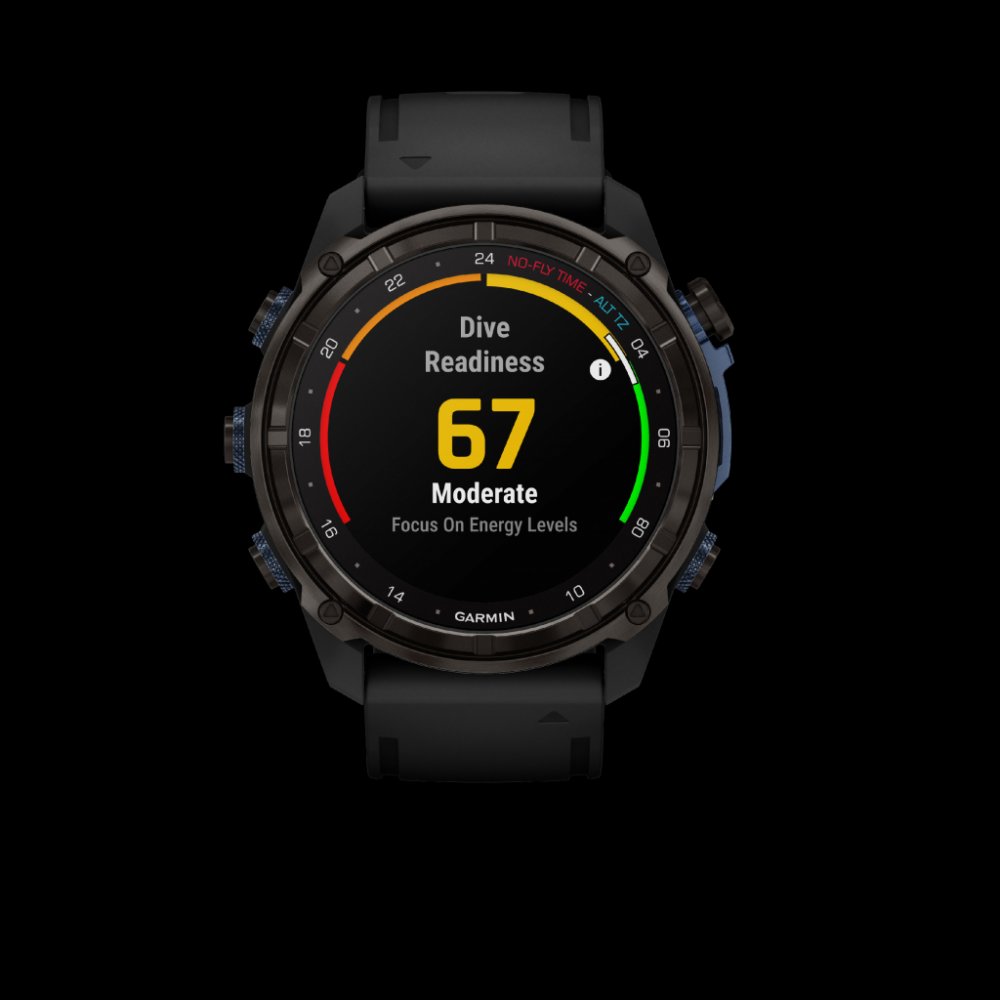 Hodinky jsou navržené pro využití v hloubkách – mají jasný, barevný 1,4″ AMOLED displej, safírové sklíčko, pouzdro odolné až do hloubky 200 metrů a vodotěsná kovová indukční tlačítka.