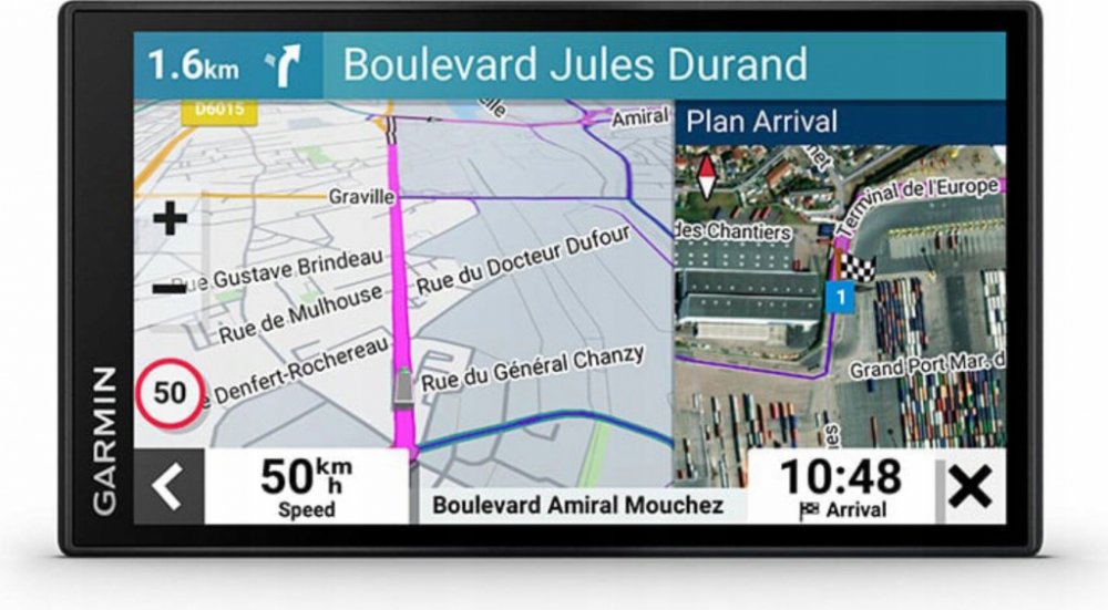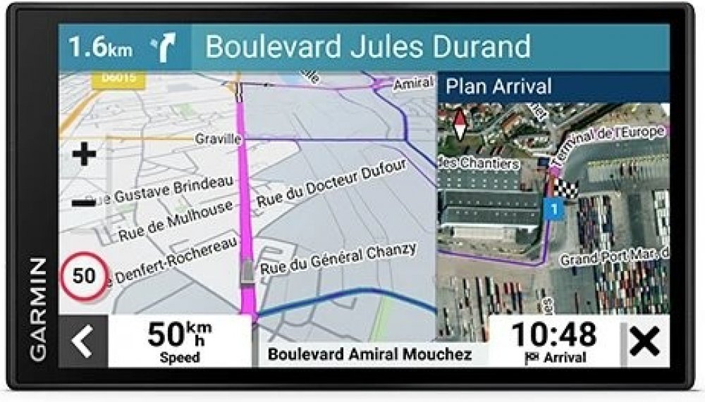 Oblíbená místa příjezdu Prohlédněte si svou destinaci a přidejte a uložte vlastní body příjezdu, jako jsou preferované bezpečnostní kontroly, nakládací doky a vjezdy na parkoviště pro nákladní vozy. Nejvhodnější trasa pro nákladní vůz Stačí zadat informace o profilu vašeho nákladního vozu (lze přizpůsobit podle výšky, hmotnosti, délky, šířky a nebezpečných materiálů) a vyhledat preferované trasy pro nákladní vozy, nejvhodnější pro vaše vozidlo a náklad. Přehled o trase Prohlédněte si snadnou celou trasu a určete nejlepší místa pro tankování, přestávky a přespání. Ukládání cílů do paměti Možnost přípravy a ukládání cílů cesty do paměti navigace. Databáze Truck Parking Europe Potřebujete zaparkovat svůj nákladní vůz? Informace z databáze Truck Parking Europe vám pomohou najít parkoviště podél trasy. Filtrovat lze podle dostupných služeb, jako je Wi-Fi, sprchy, úroveň zabezpečení a mnoha dalších parametrů. Během připojení k mobilní aplikaci Garmin dezl můžete kontrolovat dostupnost parkování a vyhnout se tak riziku příjezdu na přeplněné parkoviště. Bezpečná jízda Zařízení Garmin Drive podporuje bezpečnou jízdu a zlepšuje povědomí o okolní situaci. Upozornění pro řidiče vás upozorní na ostré zatáčky, omezení rychlosti, železniční přejezdy a další riziková místa. Adresář služeb pro nákladní vozy Vyhledejte preferované zastávky z předinstalovaného adresáře služeb pro nákladní vozy. Ten vám umožňuje filtrování podle značky nebo dostupných služeb. Bezdrátová technologie Bluetooth Vestavěná bezdrátová technologie Bluetooth umožňuje synchronizovat navigaci dezl s kompatibilním telefonem, takže můžete telefonovat s oběma rukama na volantu. Funkce integrované Wi-Fi Díky integrované Wi-Fi můžete snadno aktualizovat mapy a software i bez počítače. Když je k dispozici nová aktualizace map, zobrazí se upozornění na obrazovce.