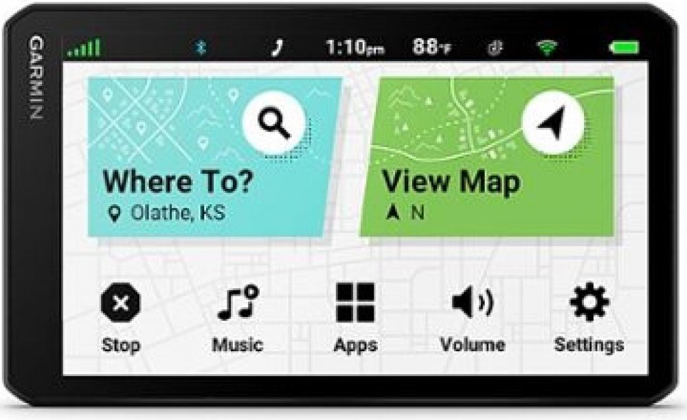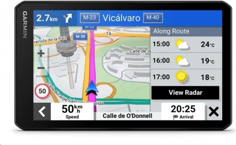 Když navigaci spárujete s kompatibilním telefonem (s funkcemi BLUETOOTH a GPS) a spustíte aplikaci Garmin Drive, vyhnete se zácpám a díky aktuálním informacím o dopravě najdete alternativní trasy, které vám ušetří čas. Můžete si také zobrazit předpověď počasí, aktuální podmínky, animovaný radar a upozornění na blížící se bouřku.