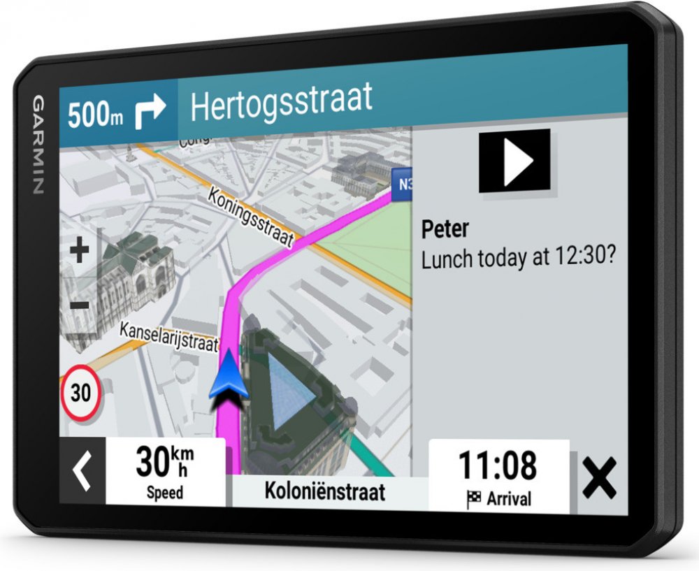 Potřebujete navigovat? Stačí říct. Navigace Garmin DriveCam reaguje na hlasové pokyny a navede vás tam, kam potřebujete. (Hlasový asistent je k dispozici v angličtině, francouzštině, němčině, italštině, španělštině, dánštině, švédštině a nizozemštině).