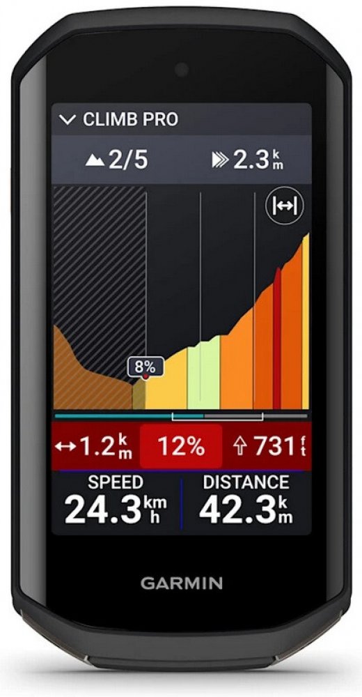 Garmin Edge 1050 je prémiový GPS cyklopočítač s velkým, jasným, dotykovým displejem a vydrží až 20 hodin na 1 nabití akumulátoru. Při propojení s kompatibilním smartphonem a aplikací Garmin Connect™ poskytuje cyklopočítač za jízdy upozornění na nebezpečí na silnici, zprávy od ostatních cyklistů, aktuální žebříčky a další informace.