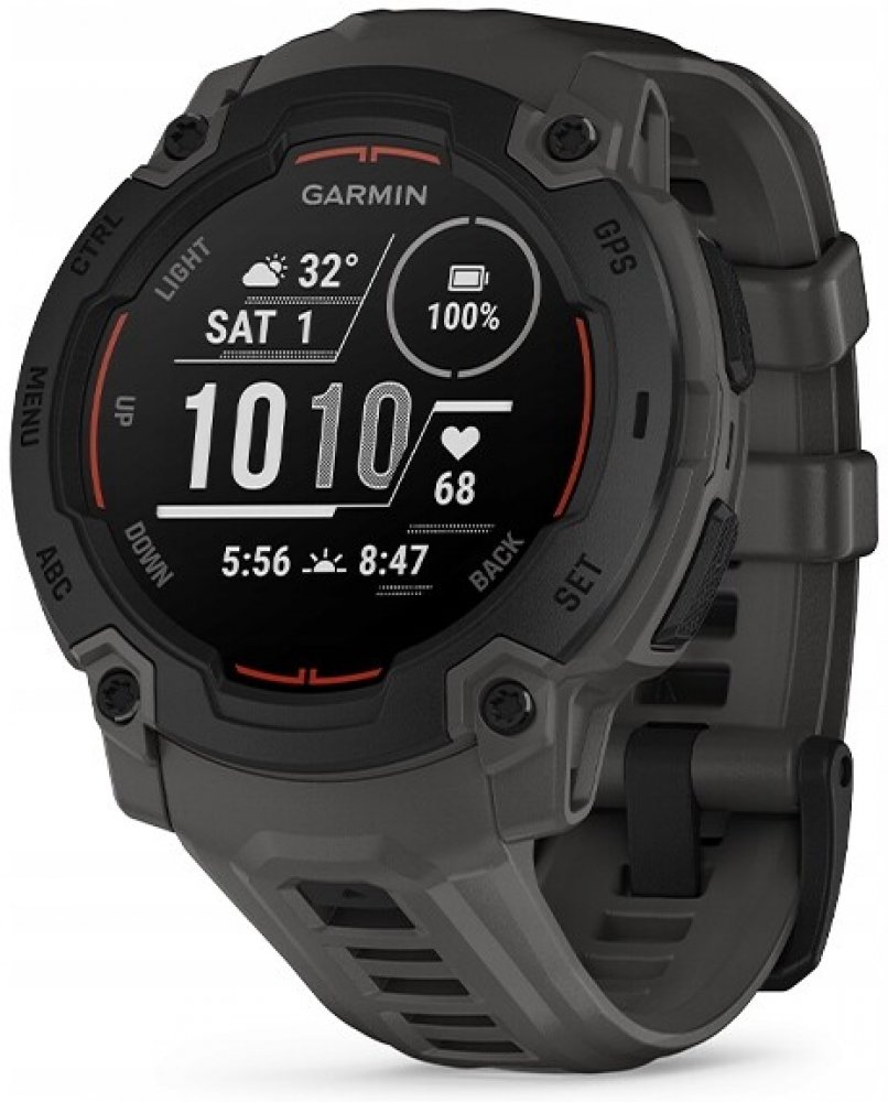 Garmin Instinct E. Délka úhlopříčky obrazovky: 2,29 cm (0.9"), Technologie displeje: MIP, Rozlišení: 176 x 176 px. Flash paměť: 0,128 GB. GPS. Hmotnost výrobku: 48 g. Materiál řemínku: Silikon, Barva řemínku: Tmavě šedá, Velikost pásku: Jedna velikost