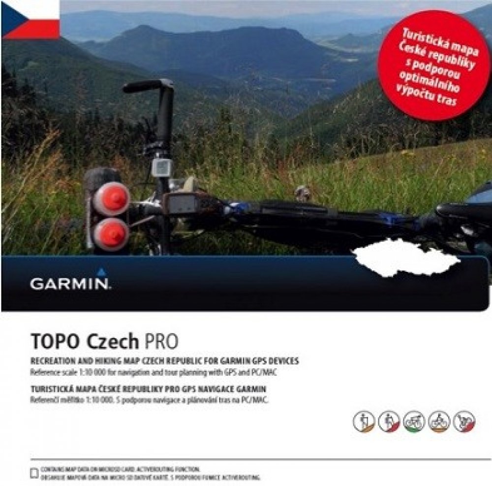 TOPO Czech v3 PRO (2017) je podrobná topografická mapa České republiky v detailním měřítku 1:10 000 s vrstevnicemi, vykreslenými druhy terénu, porostu, vodních ploch a zástavby a sítí silnic, cest, chodníků a stezek, určená převážně pro turistiku, cykloturistiku a další outdoorové aktivity. Podporuje aktivní routing s výpočtem různých tras podle typu aktivity (např. pěší turistika, cykloturistika, horská turistika, MTB) a to jak po silnicích a ulicích, tak po nezpevněných cestách a turistických či cyklistických trasách. Své trasy si můžete naplánovat jak přímo v terénu ve své kompatibilní GPS navigaci, tak v pohodlí domova na počítači (PC/MAC) prostřednictvím programu BaseCamp, který je nabízen zdarma ke stažení ZDE: