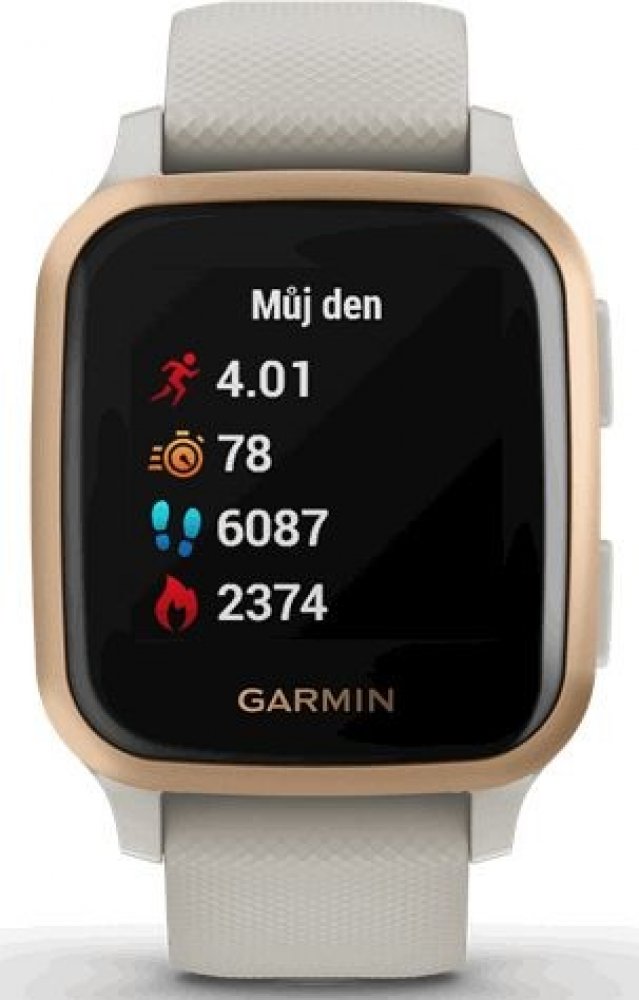 Garmin Garmin Venu unisex 20 mm Garmin QuickFit 1.3 palce LCD hranaté 240 x 240 px 37.6 g přes GPS v hodinkách kombinované vlastní OS výrobců nerezová ocel Gorilla Glass s ocelovou lunetou 50 m (5 ATM) nabíjecí kabel, zařízení s řemínkem 6 dní Li-Ion