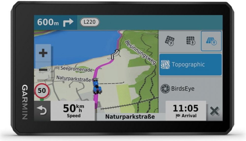 - Funkce Garmin Adventurous Routing - pro plánování cesty plné zatáček a kopců