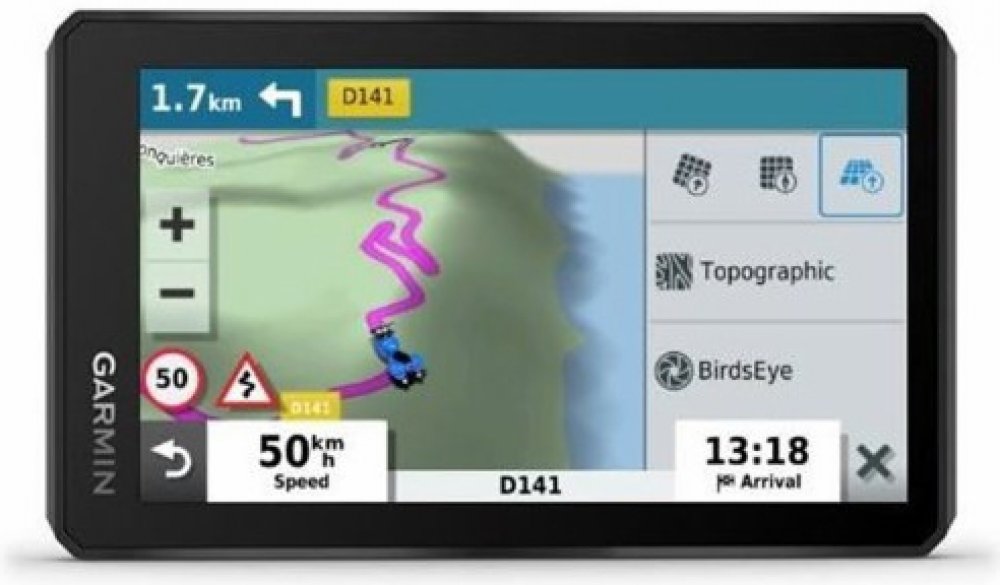 Jedním kliknutím přepínejte mezi silniční mapou, podrobnou Topo mapou a BirdsEye satelitními snímky, takže budete mít vždy detailní přehled o cestě. Náročnější motorkáři uvítají outdoorové topografické mapy pro jízdy v terénu a mimo silnice. Pomocí BirdsEye satelitních snímků můžete zmapovat trasu do nejmenšího detailu a přizpůsobit styl jízdy prostředí.