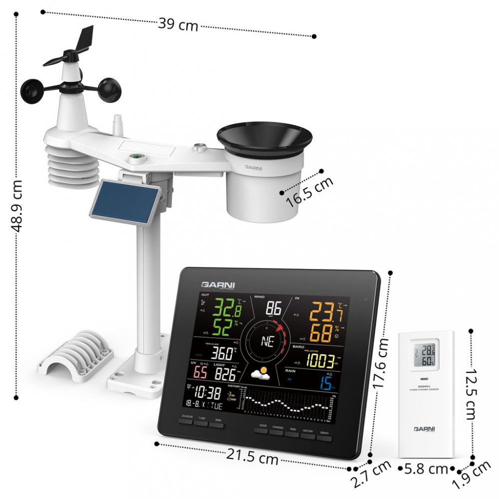 Meteorologická stanice s Wi-Fi, 24hodinovou / 7denní předpovědí a profesionálním integrovaným bezdrátovým čidlem 7-v-1 se solárním panelem a vestavěným kapacitorem, model GARNI 2060 Arcus, shromažďuje přesné a podrobné údaje o počasí, které jsou pak v reálném čase odesílány pomocí vestavěného Wi-Fi modulu a místní sítě Wi-Fi na meteorologické servery, jako je ProWeatherLive, Weather Underground, W...