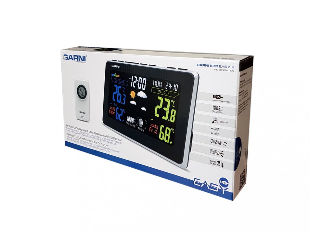 Máte potřebu vědět, jaké bude počasí? Pak pro vás bude rozhodně zajímavá domácí meteostanice GARNI, jež vám usnadní vhodné oblékání. V rámci měření zaznamenává hodnoty, ke kterým patří barometrický tlak, teplota a relativní vlhkost, navíc zobrazuje také čas, datum a fáze měsíce. Všechny údaje jsou zobrazeny na barevném VA displeji s nastavením jasu. Základna je napájená ze sítě. Aby všechny funkce fungovaly, potřebuje 3 AAA baterie. Bezdrátová meteostanice GARNI měří vnitřní i venkovní hodnoty. Každý den budete znát aktuální situaci venku a nepřekvapí vás změna počasí. Nestačí vám aktuální informace o počasí, ale potřebujete také předpověď na následující období? Není to žádná komplikace. Meteostanice GARNI disponuje také ukazatelem trendu vývoje. V balení meteostanice se nachází hlavní jednotka, čidlo a napájecí adaptér. Hlavní vlastnosti meteostanice GARNI 570 EASY III Domácí meteorologická stanice GARNI zobrazuje čas, datum a fáze měsíce Měřená data zahrnují hodnoty, ke kterým patří barometrický tlak,...