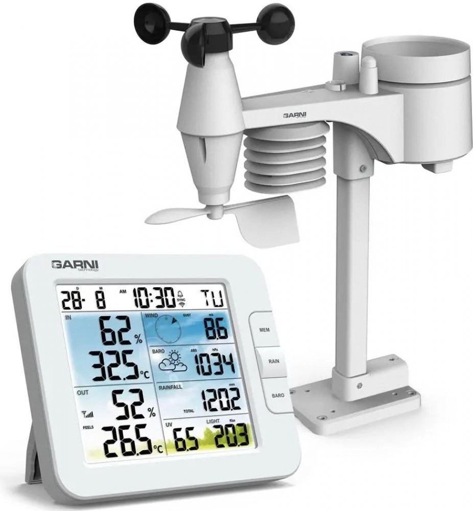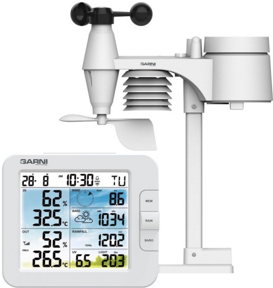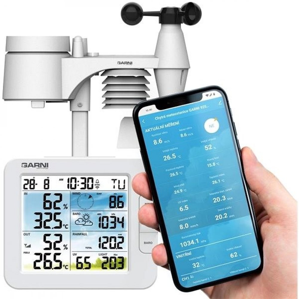 Představujeme GARNI 925T, chytrou meteorologickou stanici s integrovaným bezdrátovým čidlem 7-v-1. Tato stanice shromažďuje přesné a podrobné údaje o počasí a je ideální pro domácnost i profesionální použití. Výkonné funkce a vlastnosti