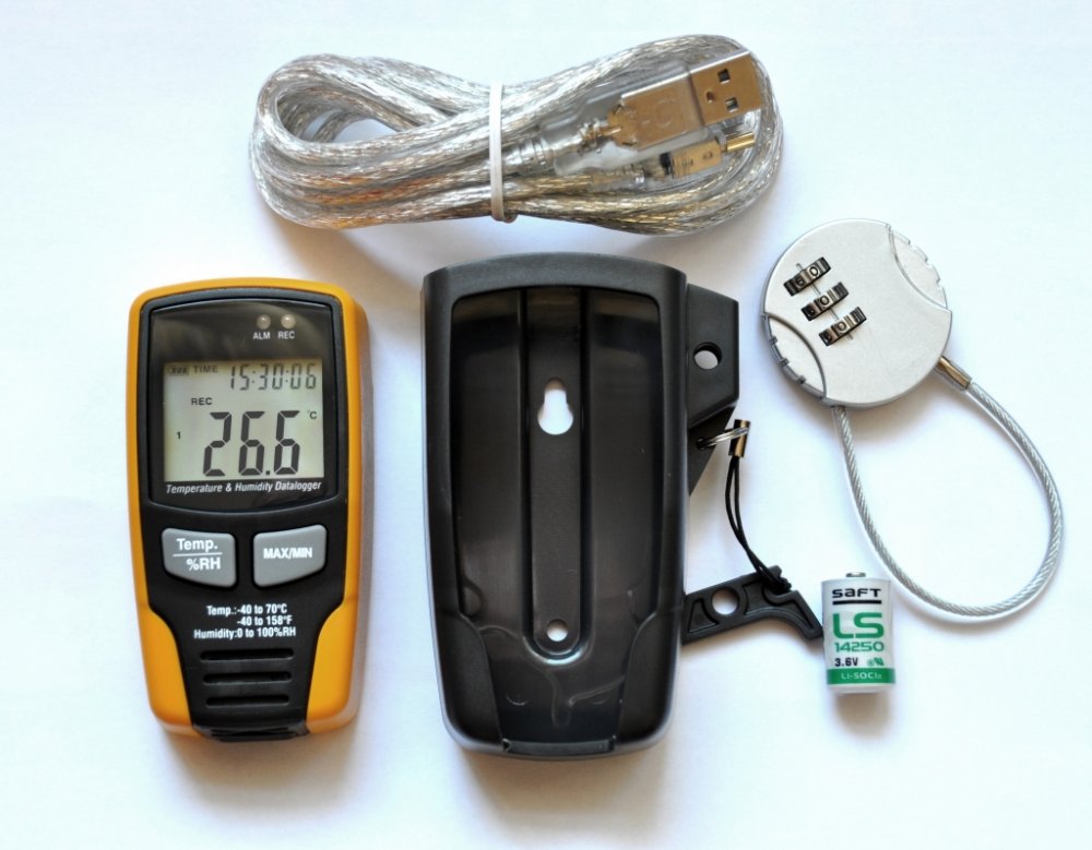 - součástí balení je datalogger, držák, baterie, CD s programem a zámek pro uzamčení dataloggeru v držáku