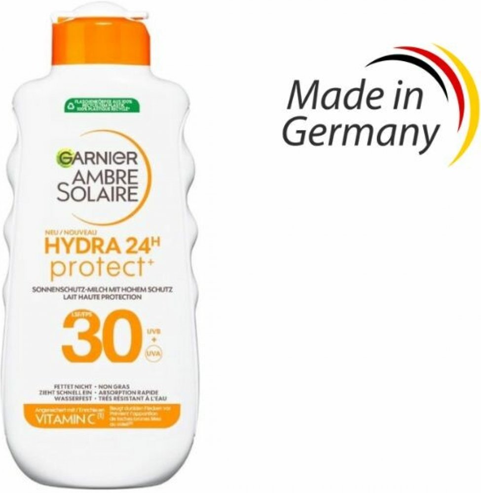 Garnier Ambre Solaire Sunmilk opalovací krém SPF 30 175ml poskytuje komplexní ochranu před UVA a UVB zářením a zároveň hydratuje pokožku až 24 hodin. Lehká mléčná textura se rychle vstřebává, nezanechává mastný film a je voděodolná – ideální pro venkovní aktivity bez starostí.