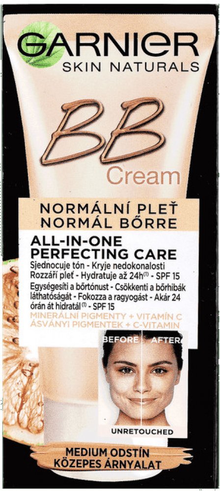 GARNIER Skin Naturals BB Cream Medium Miracle Skin Perfector 5v1 zajistí účinnou hydratační tónovací péči vaší pleti. Jedinečné spojení hydratačního krému a lehkého make-upu zakrývá nedokonalosti. Díky minerálním pigmentům sjednocuje tón pleti. Antioxidační vlastnosti vitaminu C podpoří zdravou a zářivou pleť. Ihned po aplikaci bude vaše pokožka hebká. Základní informace Konzistence: KrémTyp pleti: Pro normální a suchou pleťPoužití: DenníÚčinek: DekorativníAktivní látky: Vitamin C, Aloe vera Mladistvější pleť s BB krémem GARNIER Miracle Skin Perfector Classic 5in1 MediumSložení BB krému je obohacené o kyselinu hyaluronovou, extrakt z aloe vera a lehké minerální pigmenty pro intenzivní hydrataci, zklidnění pleti a pro přirozeně zářivou pleť. Aloe vera obsahuje více než 75 aktivních složek, včetně vitamínů, minerálů, enzymů, aminokyselin a polysacharidů. Díky těmto látkám má Aloe vera protizánětlivé, antibakteriální a antioxidační účinky. Je ideální jak pro péči o pokožku....
