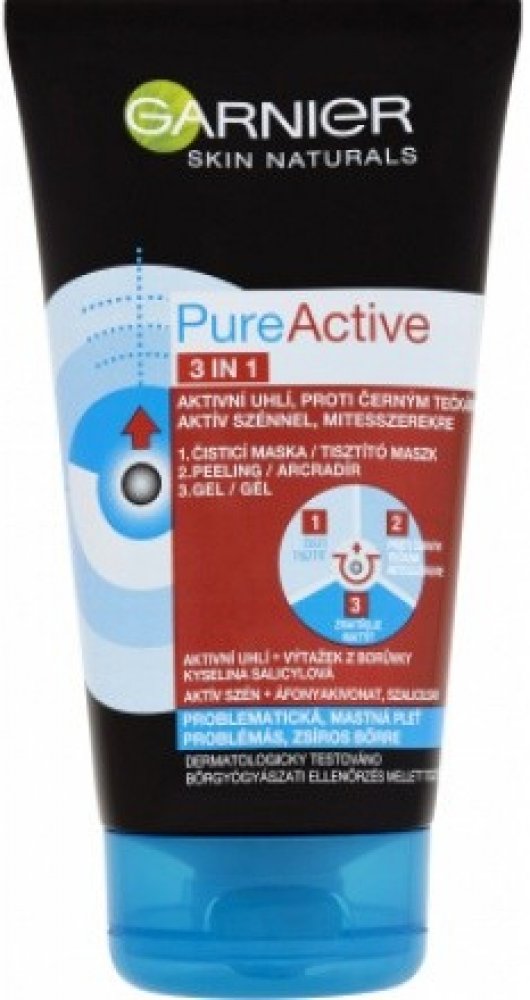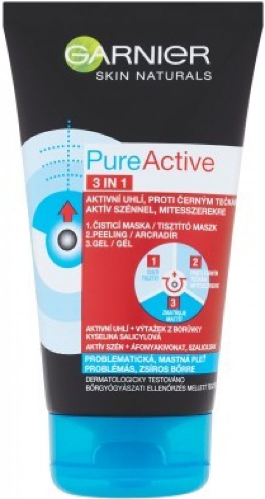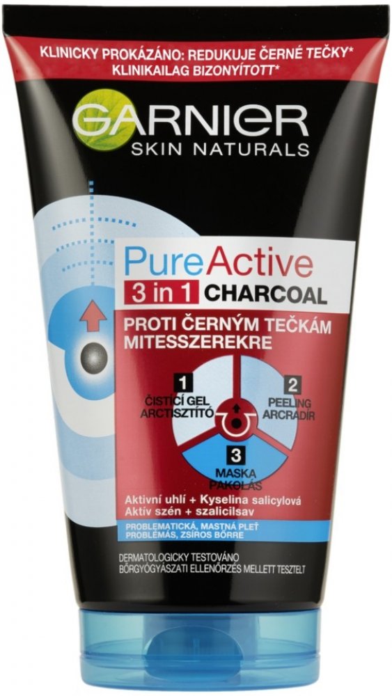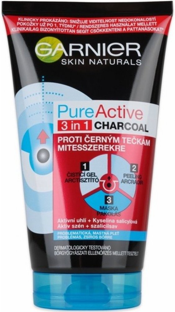 Garnier Skin Naturals Pure Active 3v1 aktivní uhlí proti černým tečkám 150 ml