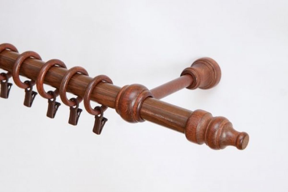 Garnyze-levne Dřevěná záclonová tyč jednořadá Ořech Favorite 28 mm 250 cm