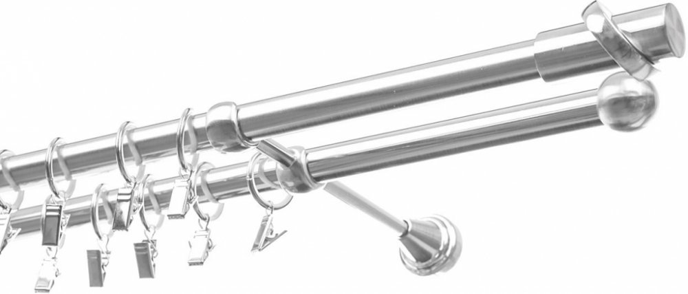 Celokovové garnýže v provedení imitace nerezi. Jedinečné zpracování a nadčasový design garnýží - to pravé pro Váš domov. Cena garnýže je uvedena za celý komplet. Komplet garnýže obsahuje - tyč, konzole (do délky 2,5 m 2 ks , při větší délce 3 ks) ,koncovky (dle zvoleného typu), kroužky s žabkami (po každých 11 cm), montážní sadu.